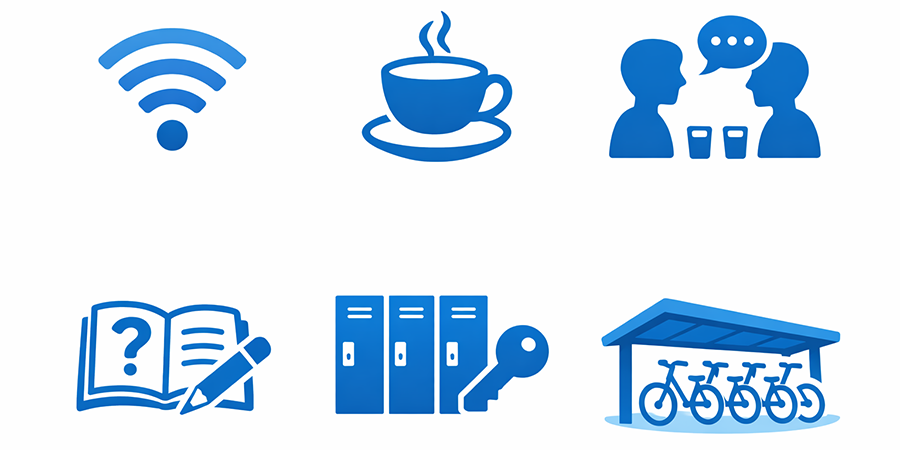 自習室のご利用者は、以下の設備をすべて自由にお使いいただけます。